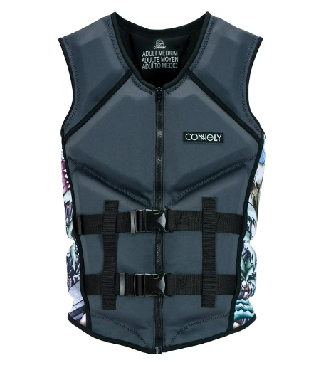 The Connelly Steel Neo Life Jacket blends all the benefits of a lightweight competition vest with extra flotation and safety features you would find in a CGA. Each foam panel is segmented, which provides the rider with continuous mobility, extra comfort, and a supreme fit. The Steel vest includes a simple front zipper and two tunneled belts for a clean and trim finish.